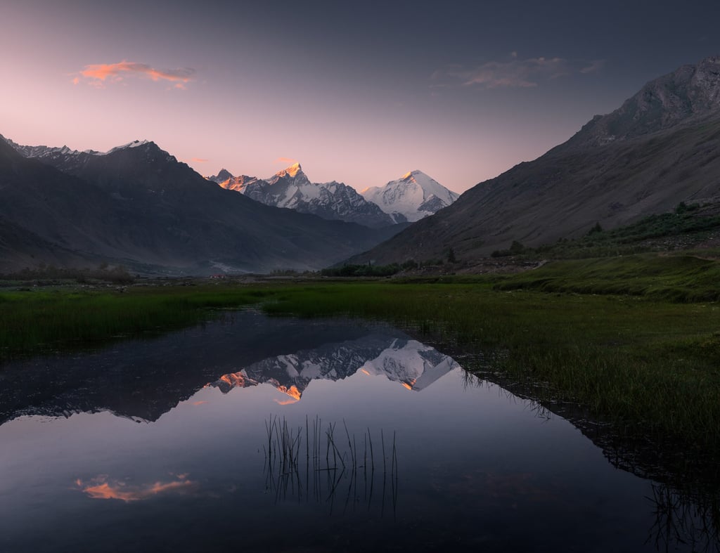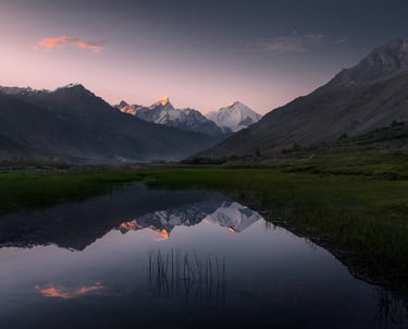 Your route shall go through Rangdum through a gradual climb until you reach a hamlet in the middle of a pass at 4400 meters. Pensi La is home to numerous alpine lakes, small and large, which are framed by the majestic Doda peak. I advise you to start looking for compositions while the light still lingers, because when the sun does go down, it really gets dark in here.