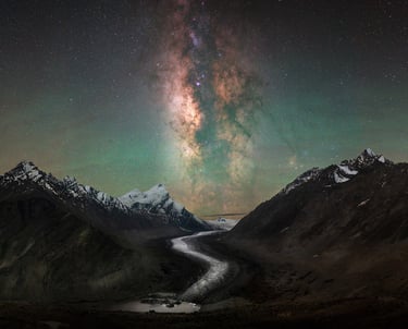 Like an ancient dragon spreading its wings and breathing scorching fire into the sky, the Drang Drung glacier would mesmerise you. Red and green band airglow would streak across the night sky, giving you Aurora-like impressions on your images. Stars would feel like they are just an arm's length away, and your lips would part in amazement. Then and only then, would my promise of the darkest skies be fulfilled!