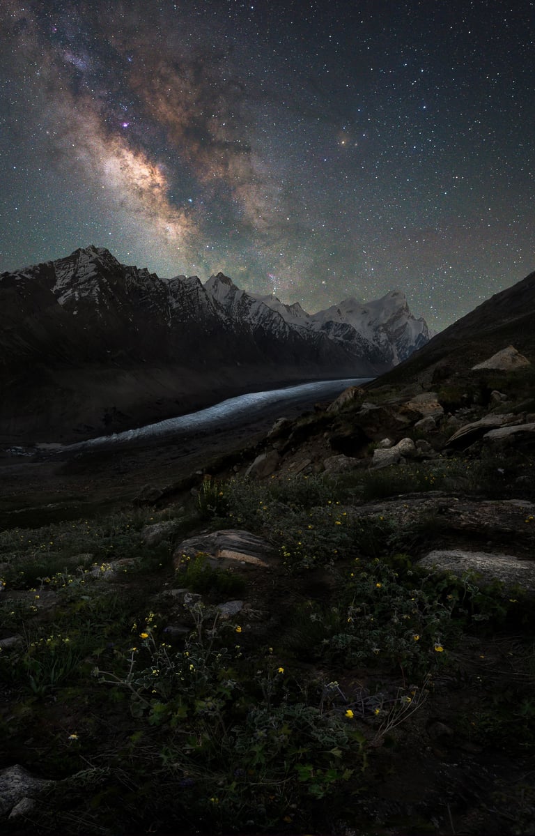 Two massive peaks welcome you, with the glacier forming an S shape right through the middle. And as the Milky Way rotates across the skies to line up right in the centre, then I can guarantee, you will admit your arduous journey to be fruitful.